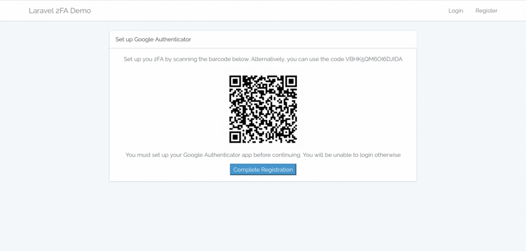 After creating a login and register for users we need to generate secret keys. These keys must be different for each user and it needs to be stored into the database on each user registration.