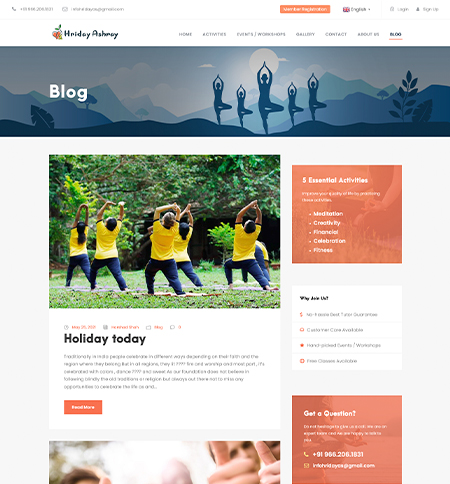 Practice of five Essential Activities daily. Many different events or workshop organized.